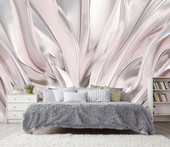 Rose Argent Pastel Luxe Vagues Fond Decran 3d Sticker Mural Etsy